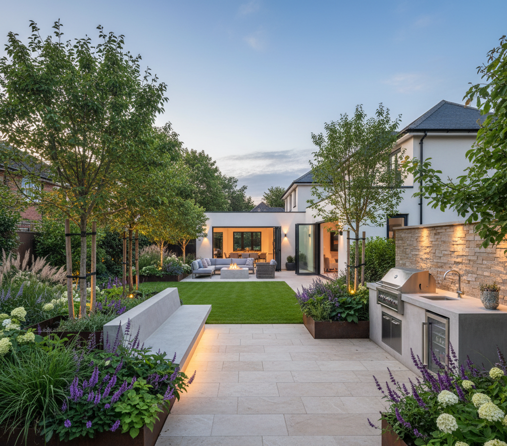 Our BALI-registered landscape architects and skilled craftsmen specialise in creating bespoke gardens that perfectly balance British heritage with modern innovation. Every design is thoughtfully crafted to enhance your property’s value whilst creating a sustainable, year-round outdoor living space you’ll love.